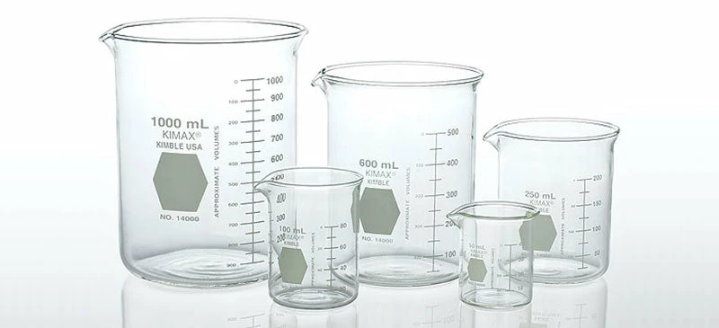 These glass beakers are made of 33 expansion low extractible borosilicate glass which is compliant with USP Type I and ASTM E438, Type I, Class A requirements.