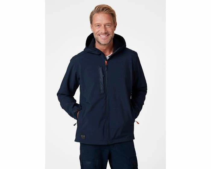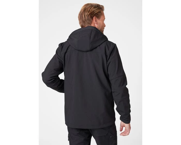 The Kensington Hooded softshell jacket is an excellent choice for the tradesmen who values ease and practicality. The high collar has a brushed fleece inside and the back is extended for improved comfort. It has multiple conveniently placed YKK® zipper pockets and the chest pocket is outfitted with a cord hole for headphones that alleviates any unnecessary tangling.