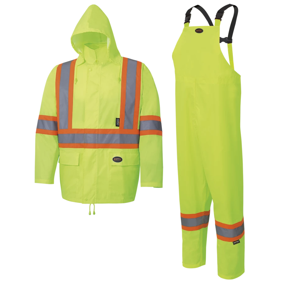 Hi-Vis Work Wear Pioneer 150D Oxford Poly/PVC Hi Vis Rain Suit | S-4XL