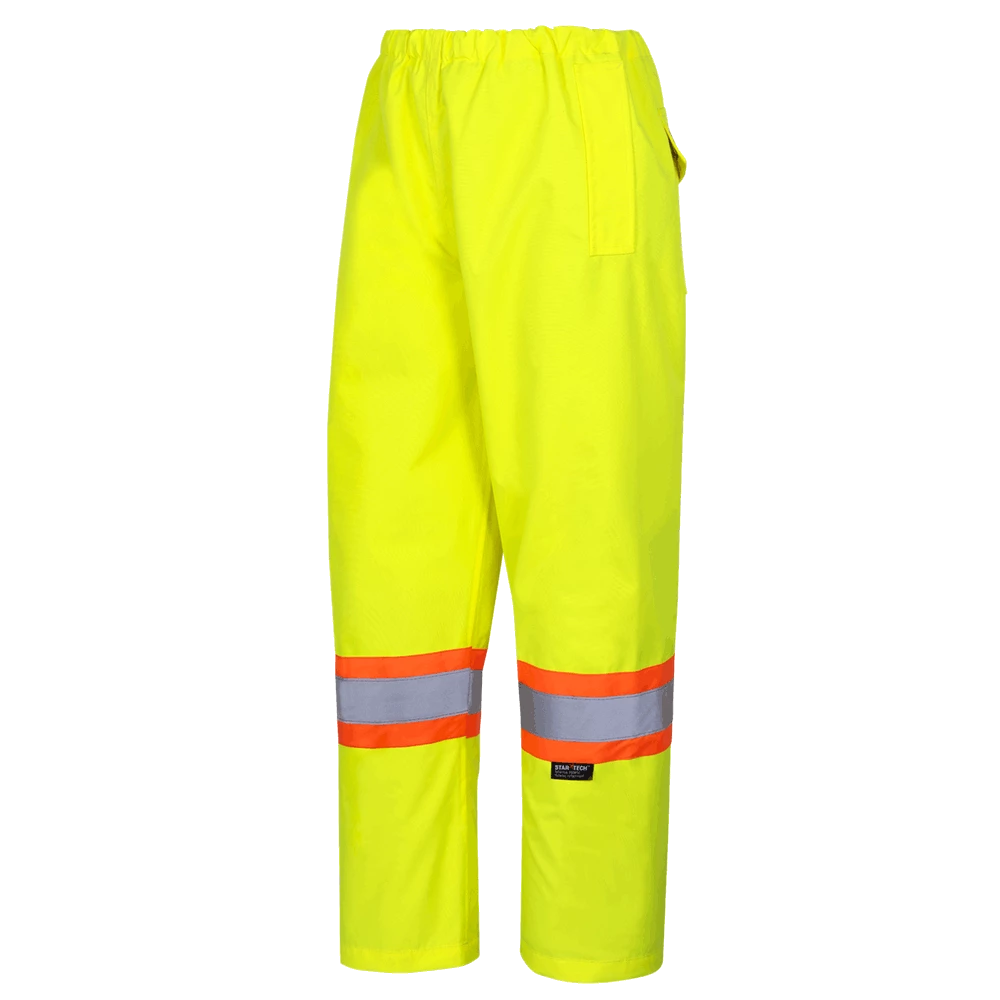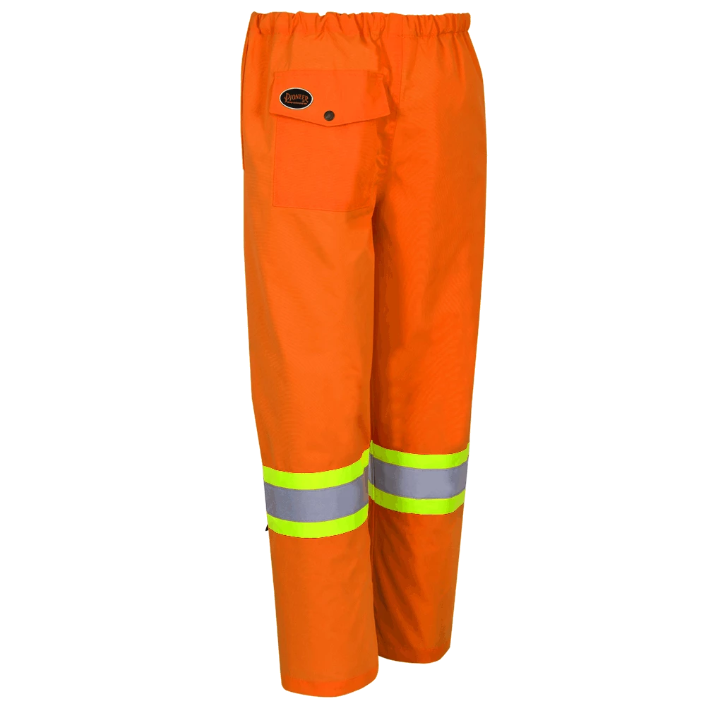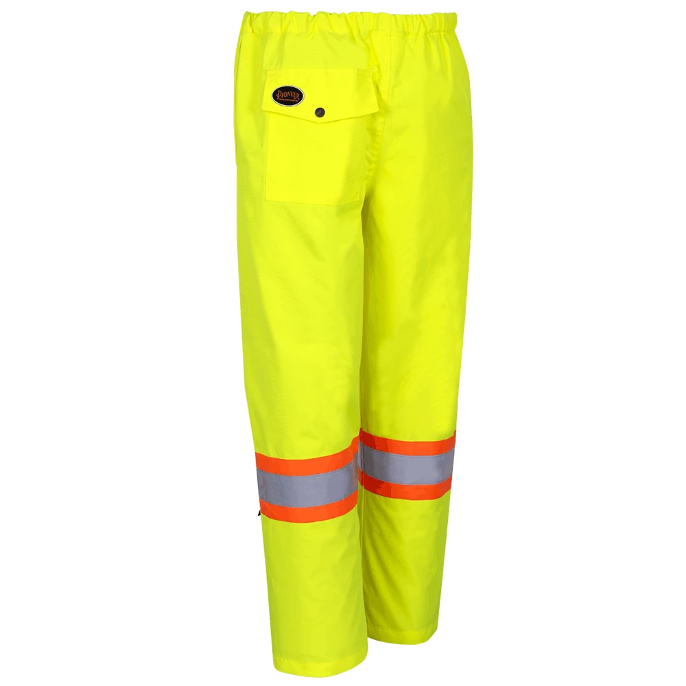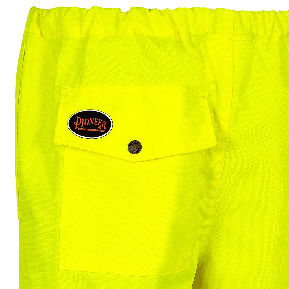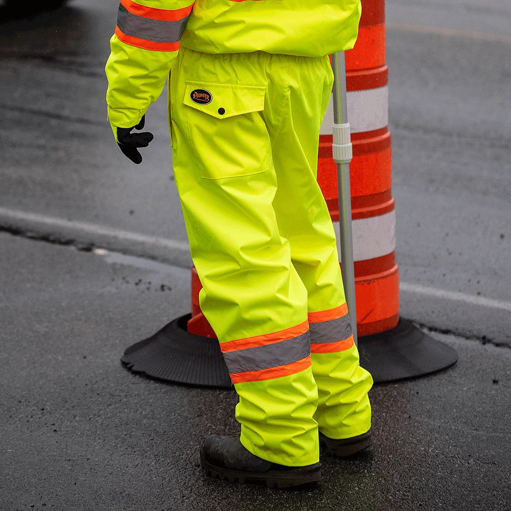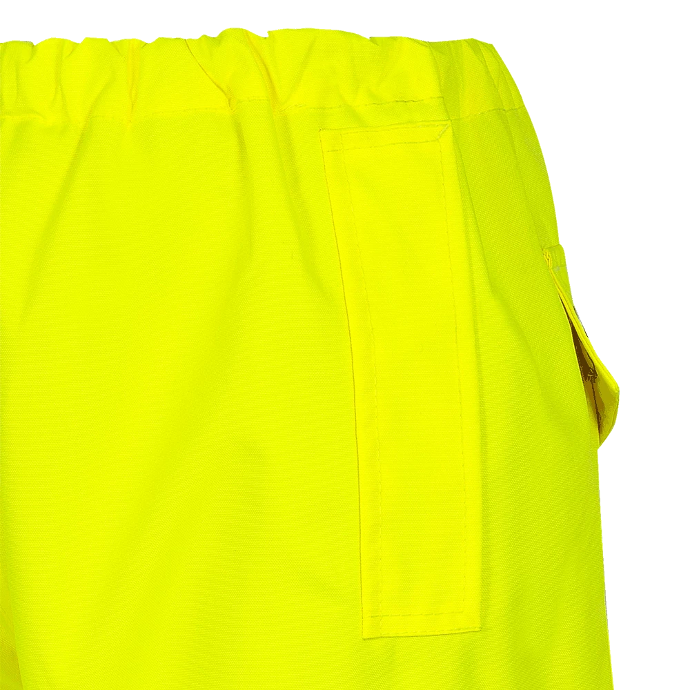 Pioneer Hi-Vis 450D Waterproof Pant are 450 denier oxford polyester with Poly Urethane backing for 100% waterproof and windproof protection.