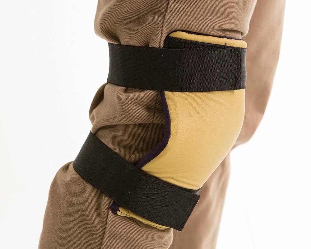 IMPACTO Soft Knee pads made with stretch polyester and grain leather for abrasion protection. Layered Visco-elastic polymer (VEP) and foam padding provide impactΒ and vibration protection. Adjustable straps with hook and loop closure