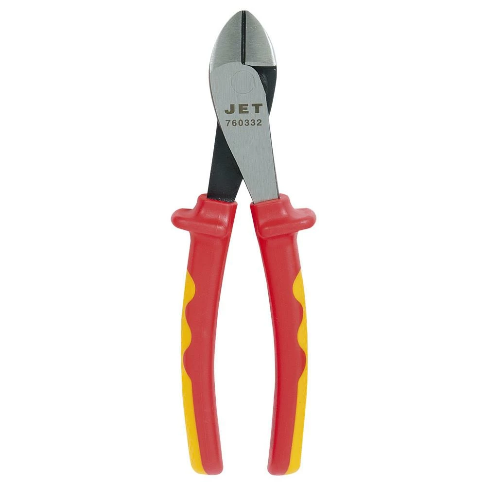 Jet VDE Diagonal Cutting Pliers are electrically shielded for use on live circuits and hybrid automobiles. Individually tested and VDE certified to 1000V. Two layers of insulation provide ultimate protection. High leverage design for easier cutting. Resistant to most chemicals, solvents, and oil