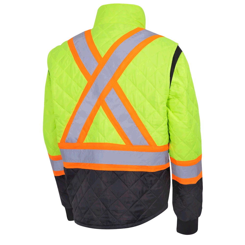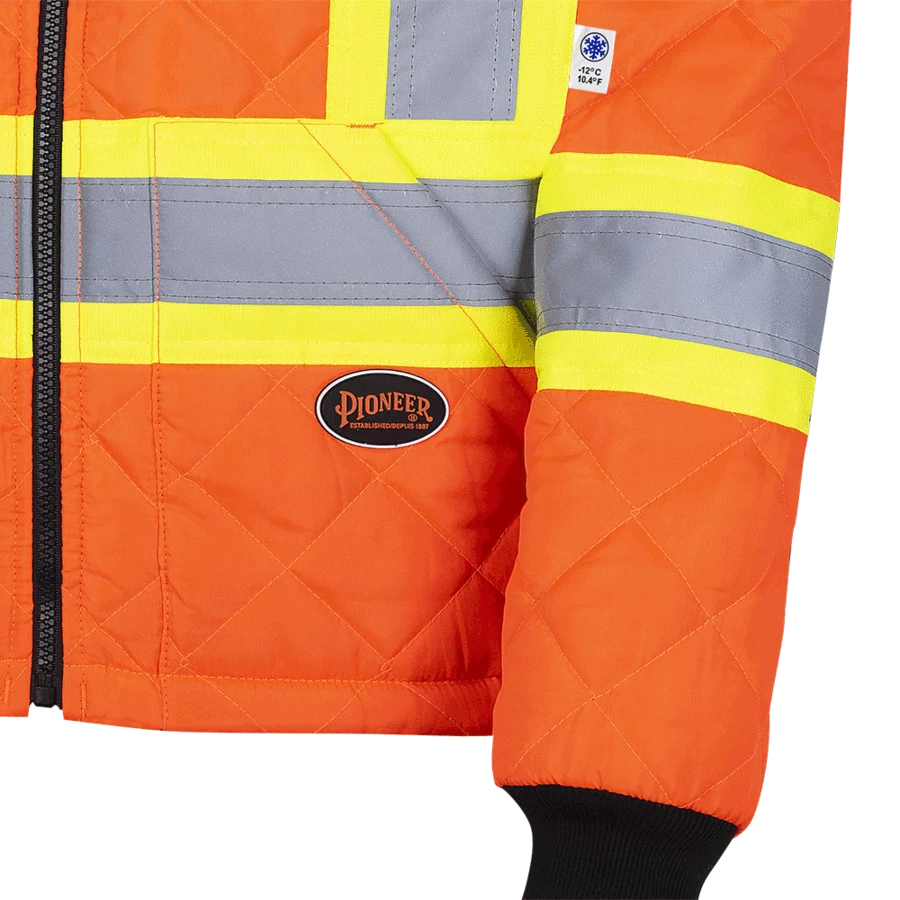The Pioneer Hi-Viz Quilted Freezer Work Jacket meets CSA Z96-15 Class 2 Level 2 requirements for high visibility work clothing.