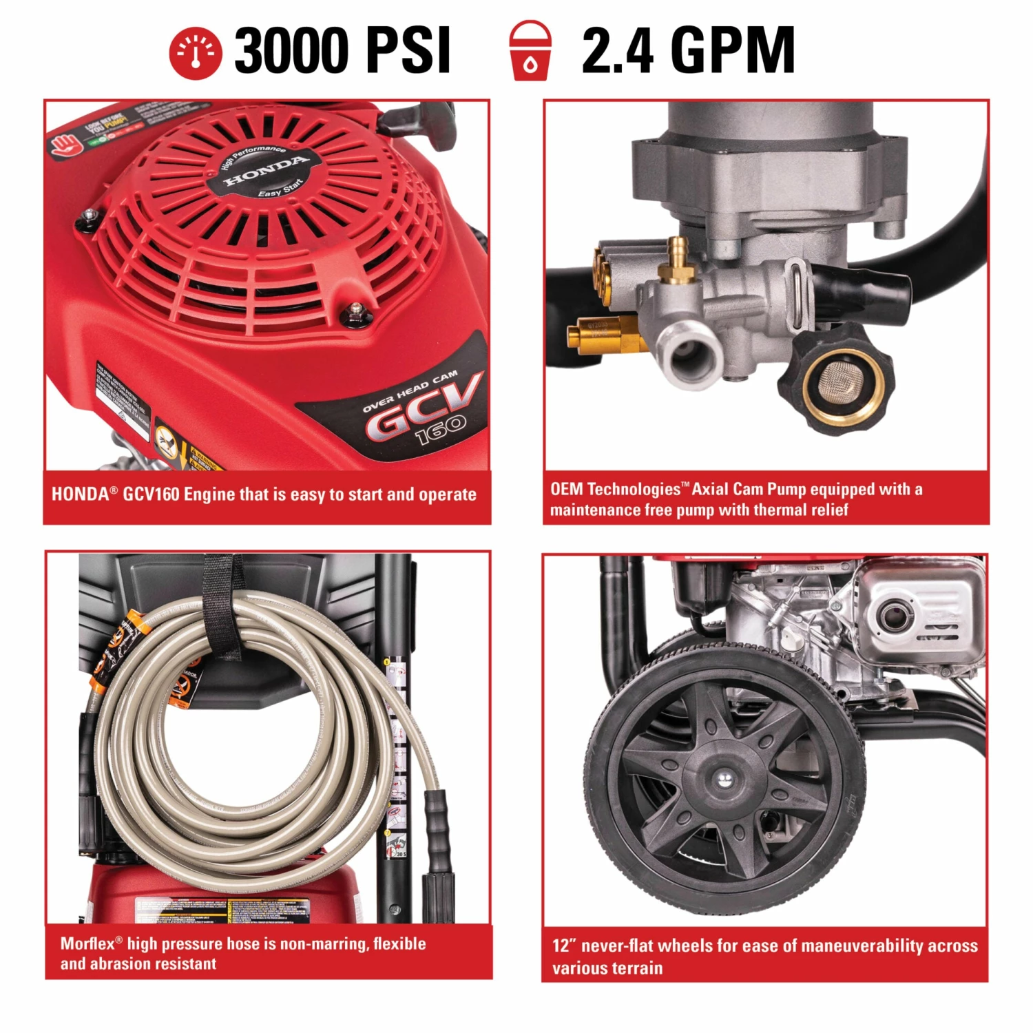 - 4 Quick connect nozzle tips: 0°, 15°, 40° and soap to use for a variety of cleaning applications