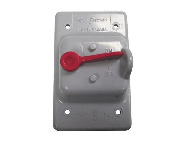 This protective weatherproof switch cover protects 120 Volt, 15 amp electrical on/off switches from moisture and corrosion. Manufactured with stainless steel return-springs/clips and packaged with brass screws and a foam gasket, Scepter weatherproof covers provide a positive seal, even in cold temperatures.