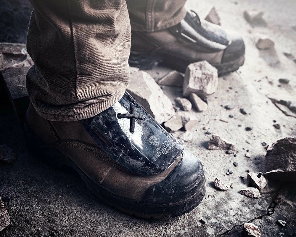 The IMPACTO metatarsal guard is a unique device that protects the metatarsal area of the foot. Designed to compliment steel cap footwear. Made of extremely durable yet lightweight polycarbonate material. Secured with existing laces or optional straps.