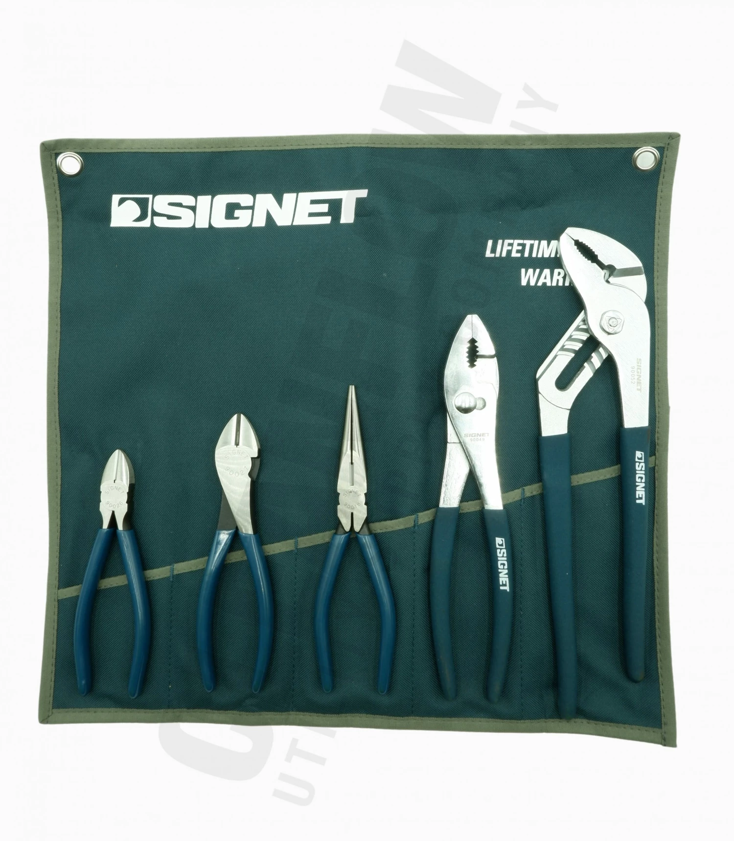Signet Industrial 5 Piece Plier Set comes in a durable storage roll and consists of the following: