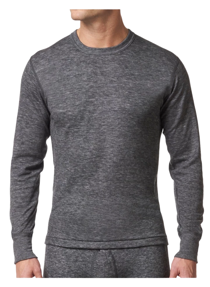 This wool blend shirt is made from a unique 2 layer jersey knit fabric that offers you the ultimate in warmth and comfort. The inner layer is a blend of 50% cotton and 50% polyester for absorbency and softness next to the skin. The outer layer is a blend of 50% merino wool and 50% polyester that offers you warmth and strength. The space between layers acts as an insulating layer trapping warm air from your body. The combination gives you one of the warmest garments you can put next to your skin.