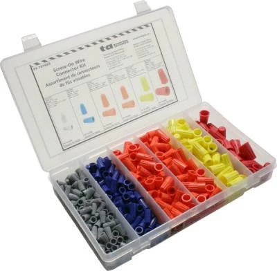 This handy assortment kit comes complete with 475 Screw-On Wire Connectors (5 types in all) in a plastic storage tray. Each part number is indexed on an affixed reference chart for easy identification and quick reorder. Dimensions: 11″W x 6″L x 1″H