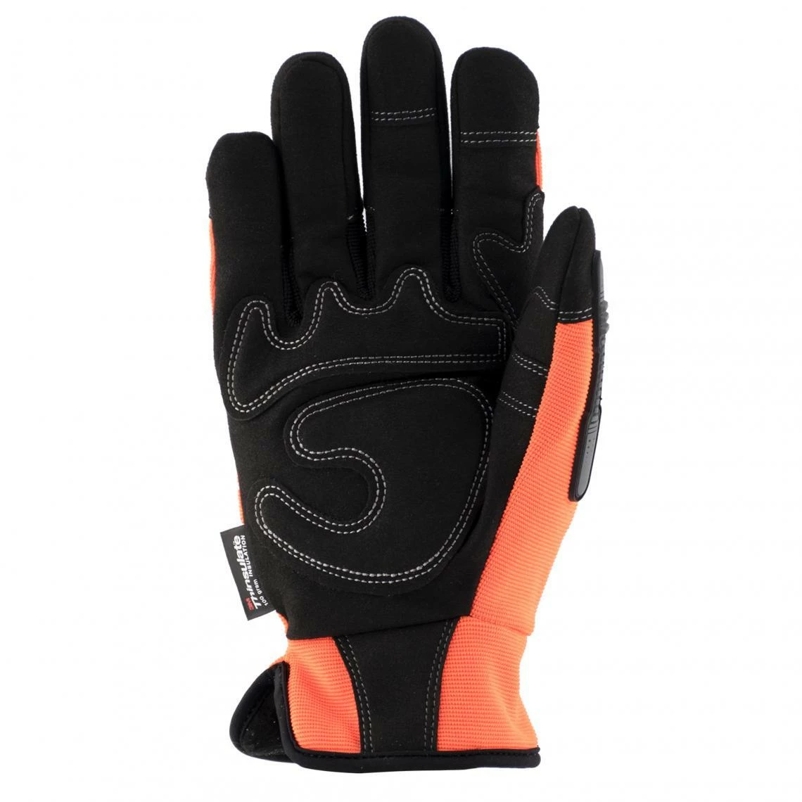 Terra Hi-Vis Orange Mechanic’s Thinsulate Winter Work GlovesΒ have a synthetic double palm. They are insulated with C100 3M Thinsulate for fall and winter cold weather protection.