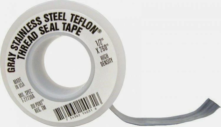 Gray Stainless Steel PTFE Thread Seal Teflon Tape is a unique thread sealing tape which prevents stainless steelΒ and aluminum fittings from galling or seizing during assembly or disassembly. The tape is impregnated with nickel powder, which acts like bearing plates, keeping the surface of the male and female threads apart.