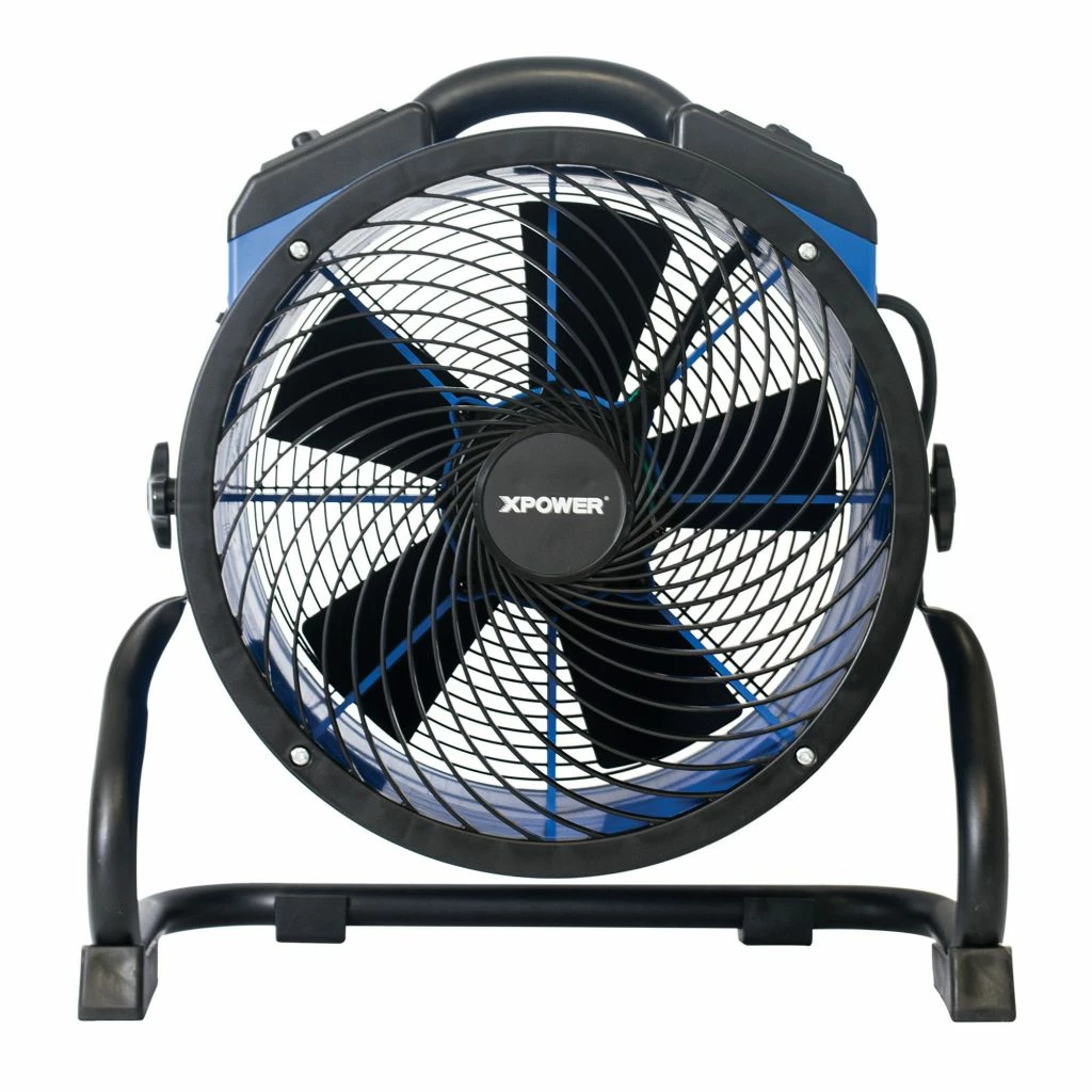 XPOWER FC-300 Professional Grade Air Circulator Utility Fan is the ideal Heavy Duty fan for any application that requires a large volume of air movement to assist in rapid drying or ventilating. The 1/4 horsepower FC-300 comes ETL / CETL safety certified paired with advanced manufacturing technology that includes XPOWER’s 4-speed operating switch for maximized airflow control over the 2100 CFM output, 3-hour Set-N-Forget timer, a durable housing design, and a rugged rack / stand for 360 degree rotational angle. This multi-purpose fan only draws 1.5 Amps and is equipped with advanced air fin guide technology to efficiently provide the multidirectional air movement required in your application. A 10 foot Heavy-Duty Wrap-Around-Cord Design and Grab-N-Go Handle, make transporting the FC-300 a breeze. With the lightweight and compact injection molded housing, the FC-300 can be stacked up to 5 units high for easy storage and transportation.